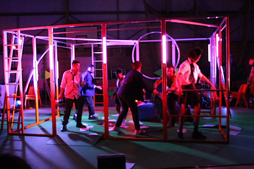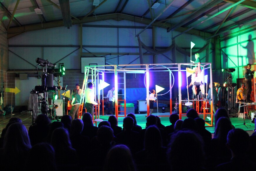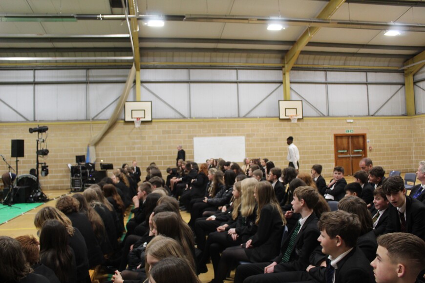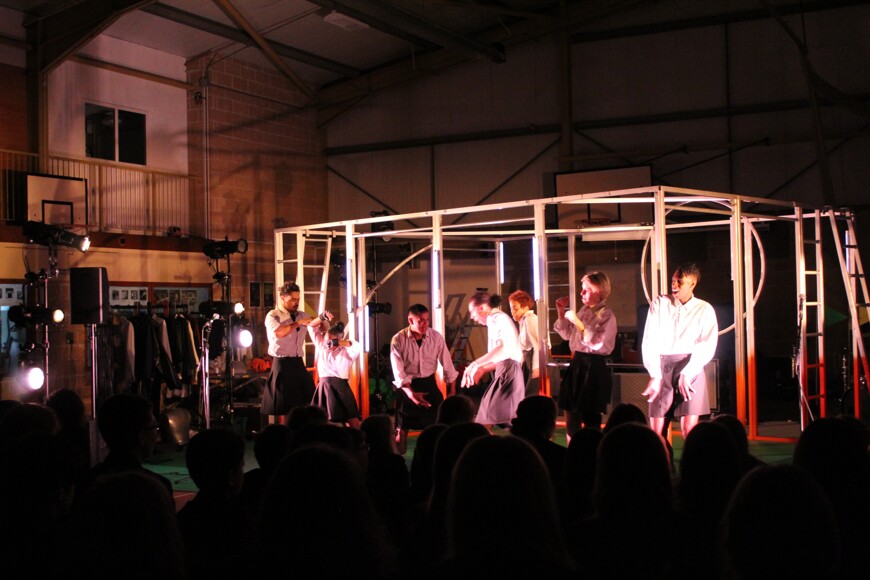 On Tuesday 28th March 2023 Year 8 had the opportunity to watch an amazing piece of performance delivered by the National Theatre.  The National Theatre brought a brand-new devised piece produced, devised and directed by the Pappy Show to SMCC.   The Pappy Show has been specially commissioned for the National Theatre's secondary schools tour and features a cast of 9 performers.  The show leant into the ambitions, hopes and feelings we hold and those we are forced to squash.  The performance was multi-disciplinary focusing upon gender, race, sexuality and identity.  Students were enthralled by the 90-minute piece followed by a Q and A session led by our Year 8 students.  Year 8 thoroughly enjoyed every minute of this thought-provoking piece aptly named 'Shut Up I'm Dreaming'.