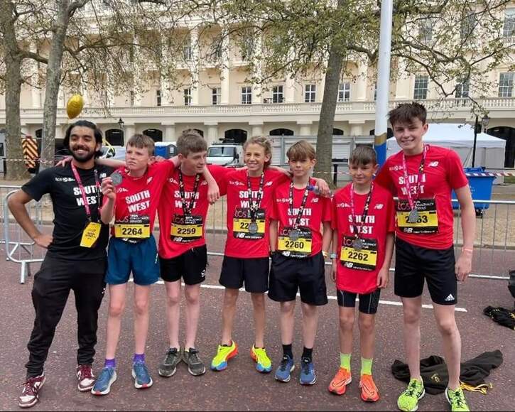 Stanley represented the South West Region at the famous TCS Mini London Marathon Championships on Saturday 22 April 2023. Over the years the Mini London Marathon has launched the careers of international athletics stars including Birmingham Commonwealth Games and Tokyo Olympics medallists Laura Muir, Keely Hodgkinson and Josh Kerr – not to mention the great Sir Mo Farah – who won the Mini three times. Following this great tradition, it was an amazing experience for Stanley to travel and stay overnight with the South West England Team and to compete among the best new talent in British road racing over the last 2.6 kilometres of the full marathon course. Jake Wightman, current 1500 metre world champion, officially started the race and Stanley and his team mates enjoyed attending a pre-race Q&A session with him.