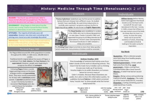 ancient texts of Hippocrates and Galen to explain why people caught diseases. People believed God could send RELIGION – The Church was still dominant. Belief in Thomas Sydenham: Sydenham was the first person to publicly William Harvey: Before Harvey,