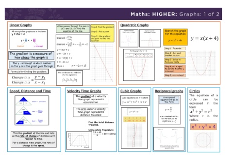 Speed, Distance and Time Velocity Time Graphs Cubic Graphs Reciprocal graphs Circles