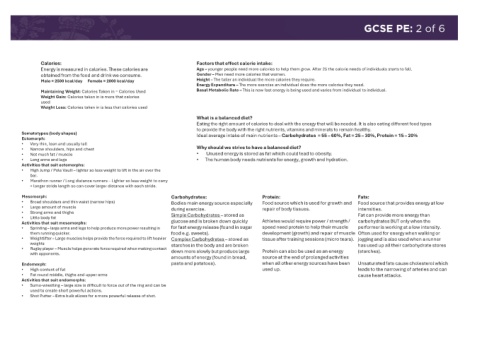 Activities that suit mesomorphs: glucose and is broken down quickly Athletes would require power / strength / carbohydrates BUT only when the