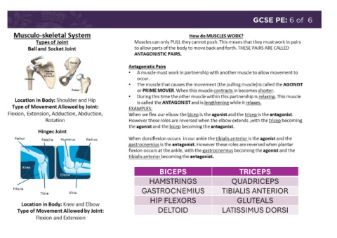 GCSE PE: 6 of 6 BICEPS TRICEPS HAMSTRINGS QUADRICEPS GASTROCNEMIUS TIBIALIS ANTERIOR HIP FLEXORS GLUTEALS DELTOID LATISSIMUS DORSI
