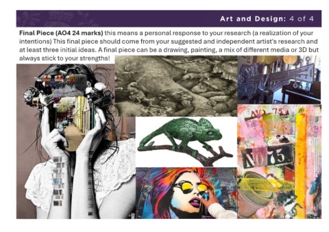 All pages should include annotation. This helps to intentions) This final piece should come from your suggested and independent artist's research and