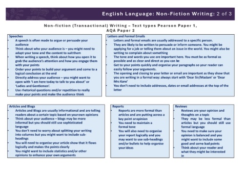 Non-fiction (Transactional) Writing – Text types Pearson Paper 1,