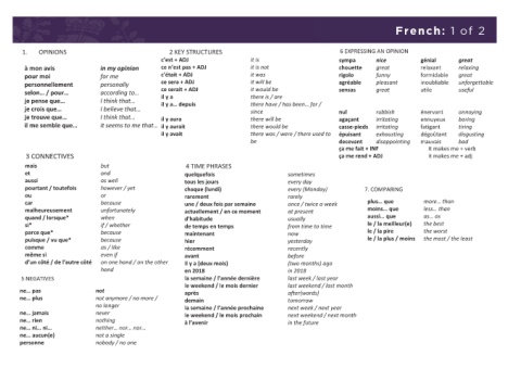 pourtant / toutefois however / yet chaque (lundi) every (Monday) 7. COMPARING