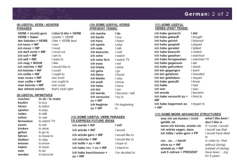 vor (zwei Monaten) (two months) ago (7) COMPARING essen to eat ich werde + INF I will