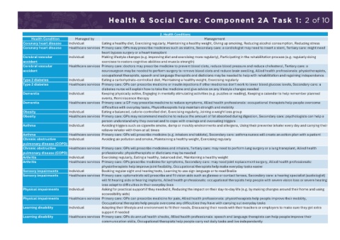 How healthcare services work together to 1. How one healthcare service could meet the specific health Look carefully at the age and health condition of the Health Condition Managed by Management