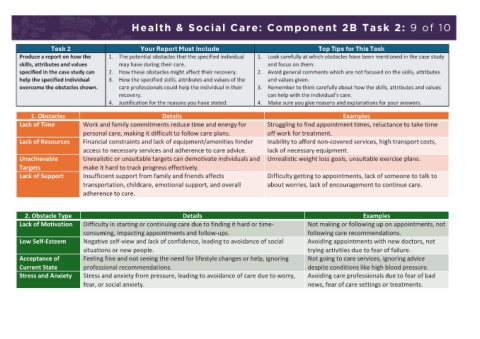 specified in the case study can 2. How these obstacles might affect their recovery. 2. Avoid general comments which are not focused on the skills, attributes