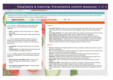 Hospitality & Catering: Preventative control measures: 5 of 6