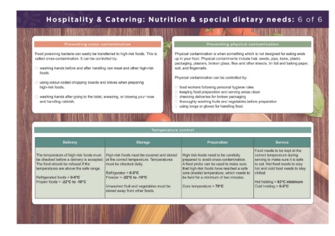 Hospitality & Catering: Preventative control measures: 5 of 6 Hospitality & Catering: Nutrition & special dietary needs: 6 of 6