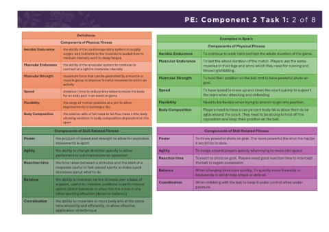Component 2 Task 1 Details Definitions: Examples in Sport: