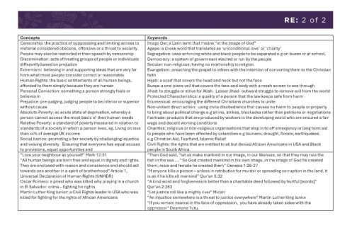 emotional/psychological or spiritual Sacrament: outward sign of an invisible and inward blessing by God. Eg. Baptism, eucharist and valuing diversity. Ensuring that everyone has equal access Civil Rights: the rights that are entitled to all but denied African Americans in USA and Black