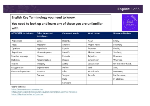 AFORESTER techniques Other important Command words Word classes Discourse Markers