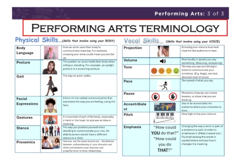 PERFORMANCE (USING YOUR VOICE) PERFORMANCE (USING YOUR BODY) P Performing arts terminology