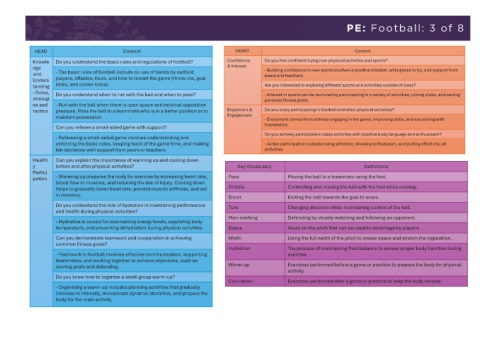Knowle Do you understand the basic rules and regulations of football? Confidence Do you feel confident trying new physical activities and sports?