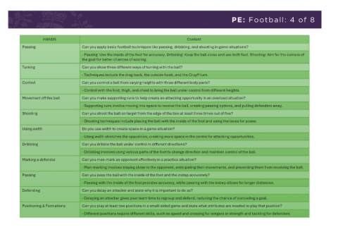 Passing Can you apply basic football techniques like passing, dribbling, and shooting in game situations?
