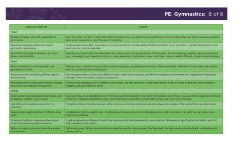 Express interest in exploring different sports Exploring gymnastics: Learn about different types, watch performances, try different apparatus and movements. Engagement: Participate