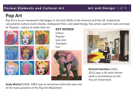 Pop Art is an art movement that began in the mid-1950s in the America and the UK. Inspired by
