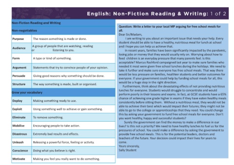 Question: Write a letter to your local MP arguing for free school meals for