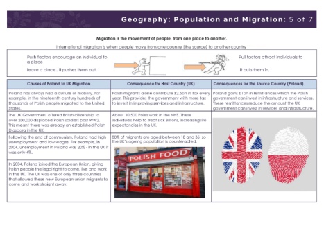 Causes of Poland to UK Migration Consequence for Host Country (UK) Consequences for the Source Country (Poland)
