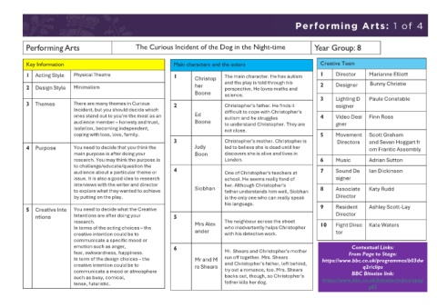 Performing Arts The Curious Incident of the Dog in the Night-time Year Group: 8