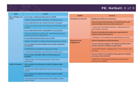 Catching Can you catch and turn in the air in a practice situation? Dodge Quick movements to lose a defender and create Can you explain advanced strategies such as double marking and Can you actively engage in all netball activities with a