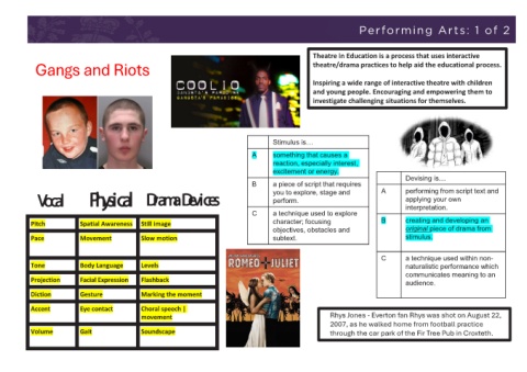 Gangs and Riots theatre/drama practices to help aid the educational process.