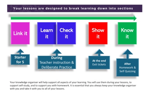Your knowledge organiser will help support all aspects of your learning. You will use them during your lessons, to