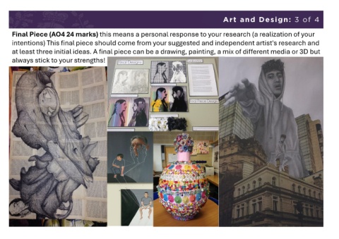 Final Piece (AO4 24 marks) this means a personal response to your research (a realization of your