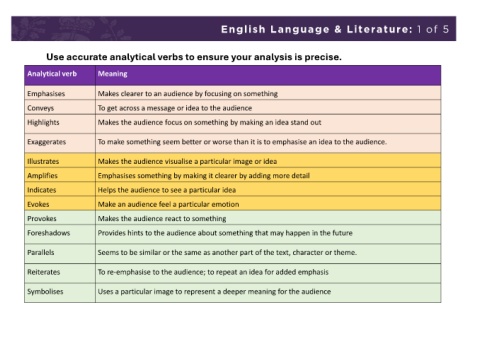 Reiterates To re-emphasise to the audience; to repeat an idea for added emphasis