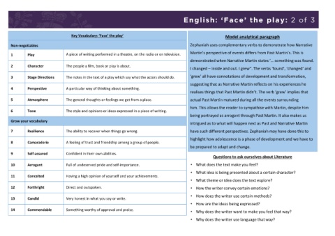 Key Vocabulary: ‘Face’ the play' Model analytical paragraph