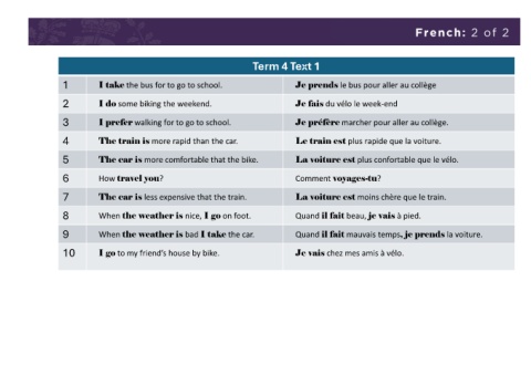 1 I take the bus for to go to school. Je prends le bus pour aller au collège
