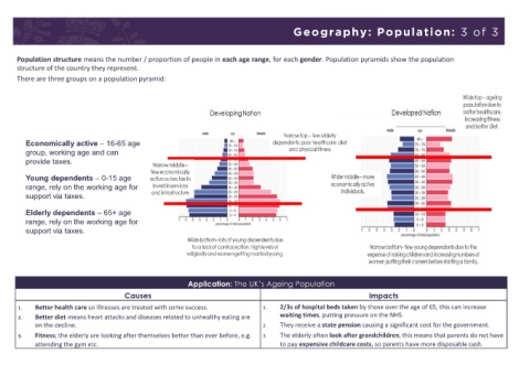 Population structure means the number / proportion of people in each age range, for each gender. Population pyramids show the population